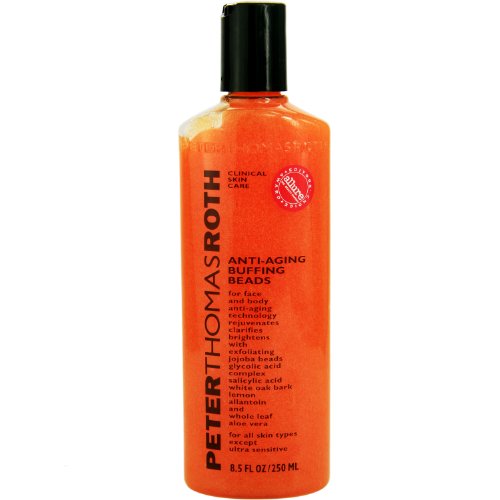 Peter Thomas Roth Anti-Aging Buffing Beads rejuvenates, clarifies, and brightens skin to help produce beautiful, fresh, youthful looking skin. It contains jojoba beads to exfoliate surface dead skin cells without irritation and glycolic acid and salicylic acid to leave the skin clear. The ultra-fine jojoba beads help refine skin texture and smooth out fine lines. Directions: Using a small amount on the fingertips, add water and gently exfoliate the face, chest and body. For face, follow with PTR cleanser, tonic, treatment products, moisturizer and SPF for day. For body, follow with PTR Anti-Aging Buffing Beads Body Wash. Rinse thoroughly. Combination, oily and acne prone skin, use daily. Normal, dry and sun-damaged skin use two to three times a week at first, increasing to daily usage if well tolerated. For individuals with sensitive skin, use once a week. Peter Thomas Roth Anti-Aging Buffing Beads Ingredients: Water (Aqua), Hydrogenated Jojoba Oil, Sodium C14-16 Olefin Sulfonate, Carbomer, Aloe Barbadensis Leaf Juice, Disodium Cocoamphodipropionate, Citrus Medica Limonum (Lemon) Fruit Extract, Glycolic Acid, Arginine, Salicylic Acid, Quercus Alba (White Oak), Bark Extract, Allantoin, Propylene Glycol, Disodium Edta, Triethanolamine, Bht, Diazolidinyl Urea, Methylparaben, Propylparaben, Yellow 5 (CI 19140), Red 40 (CI 16035), Fragrance.